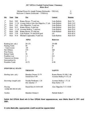 TUES NOV 28 1:00PM – Michael Power/St. Joseph 0, CFC50 Richview Saints 52