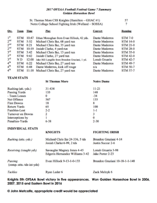 TUES NOV 28 7:00PM –Β CFC50Β St. Thomas More 57, CFC50Β Notre Dame 7