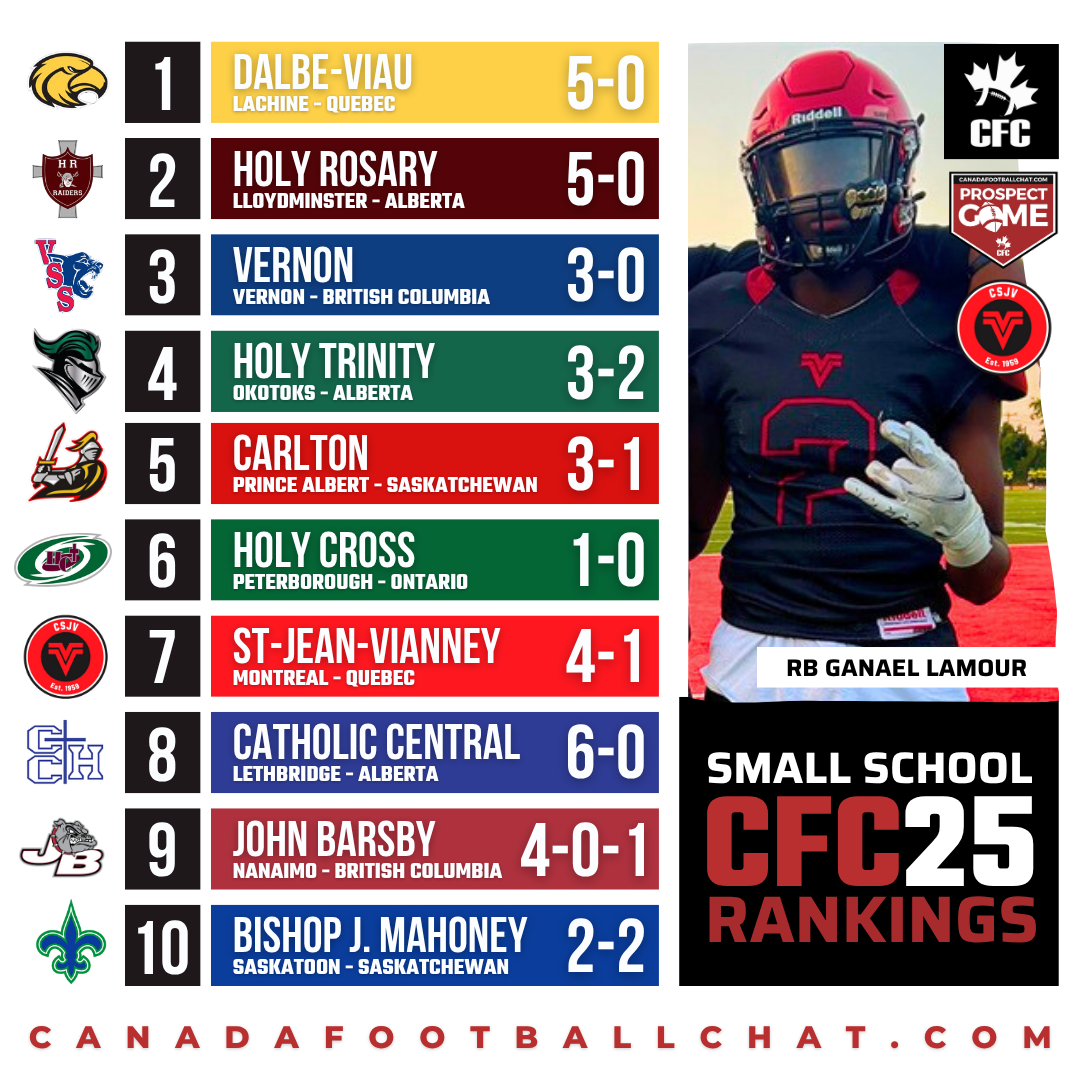 - If you want to talk about chaos, look no further than Alberta Tier II this season. Catholic Central have exploded onto the scene, and they’ve got another notch in their belt after holding on for a 30-29 victory over a very good Chinook squad to keep their unbeaten streak alive. Are they the team to beat instead of Holy Trinity Academy? It’s still tough to say at this point in the campaign with the Knights in the middle of a CFC50 gauntlet with a string of game featuring 8th ranked Raymond, 34th ranked Lethbridge twice, and next week against #18th ranked Salisbury. They nearly pulled off the upset against Lethbridge in their first contest, and will be chomping at the bit to get another swing at the Rams in two weeks time. In reality the most telling game remaining on Holy Trinity Academy’s schedule will be a marquee matchup against St. Joseph’s to close out the year, who are another team that cannot be counted out of the championship discussion. Then you’ve got George McDougall and Cochrane in the mix, who have been quietly going about their business and also have strong cases that they’ll be the final team standing in November. It’s the type of chaos we live for, and we’re loving watching it all play out in the competitive 4A conference this season.