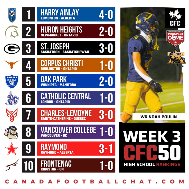 - By proxy, the Armand Corbeil have also joined the top 50 despite dropping their first game 44-7 against Saint-Jean-Eudes, and they’re going to have to take everything they learned from that tough loss into consideration this week with another massive matchup against top 10 ranked Charles-Lemoyne, who’re now the only unbeaten left in the division. It might give us headaches on the rankings, but we absolutely live for the chaos in Quebec.