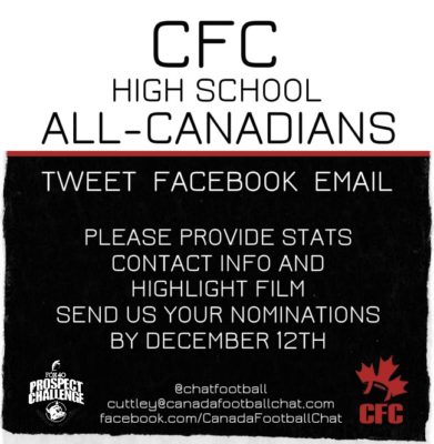 For the second year, CFC will be releasing our CFC High School All-Canadian teams. These players will have been evaluated and nominated by the CFC scouting bureau and staff, various coaches, players, parents, and media types.