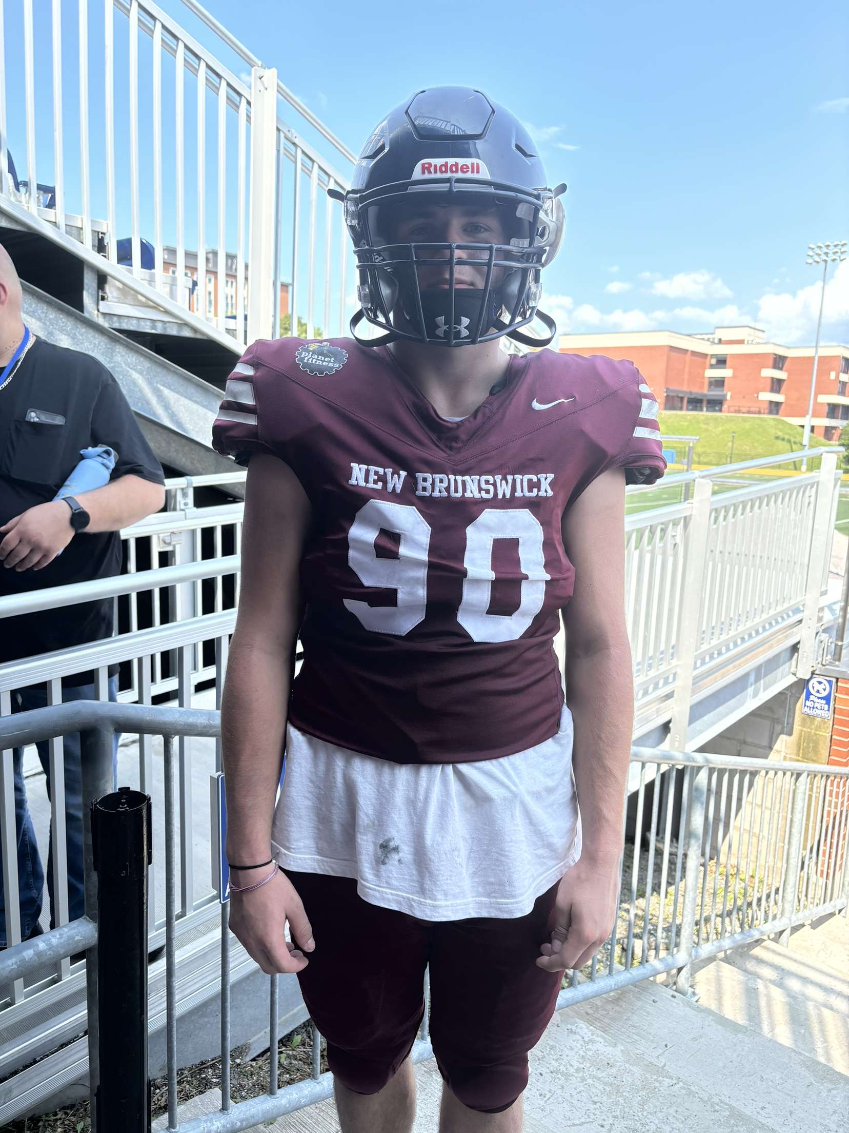 Class of 2027 LB Brad Moore out of Leo Hayes in Fredericton, New Brunswick, plays with a motor that shows up everywhere. The production since his Grade 9 season paints the picture right away with close to 100 tackles, four interceptions, six touchdowns, and four forced fumbles, along with recognition as the number one player in the East Division.