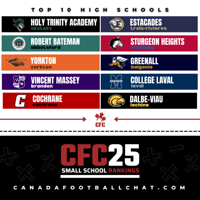 We had another top ten program fall in Manitoba where Sturgeon Heights proved they belong in the conversation for top program in the nation with a definitive 52-14 victory over Springfield. This is the first every regular season loss for Springfield since the inception of their program in 2019, and the Huskies weren’t interested in leaving any doubt about who the better team is right now. They’ve been on a ridiculous pace to start the year outscoring their opponents 158-21 through four games, and could possibly take over the top spot in the province this week with an impending slugfest between Vincent Massey and newly ranked Miles MacDonnell. Both teams struggled to find a way past John Taylor this season, who deserve a ton of credit for their efforts despite dropping both games. However, it does provide a measuring stick, and it looks like there’s not much separating the Vikings and Buckeyes on the field.