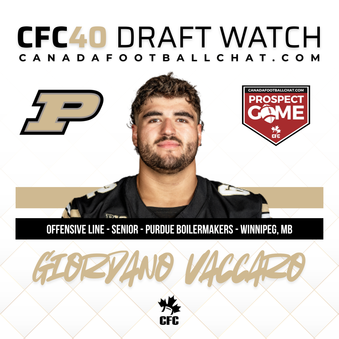 Todayβs player of focus is Purdue OL Giordano Vaccaro out of Winnipeg, who burst onto the national scene in the inaugural CFC Prospect Game on TSN.