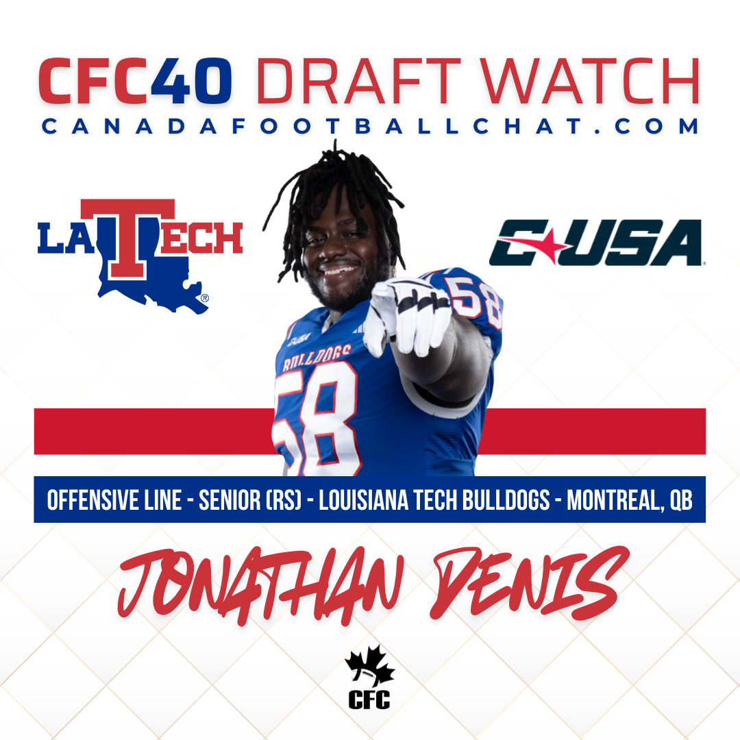 Welcome back to another edition of CFC40 Draft Watch. Today we’ll be looking at Montreal-born OL Jonathan “Tow Truck” Denis out of Louisiana Tech, who was recently added to the CFL Draft list so he didn’t appear on the first edition CFC40 rankings, but will certainly be on the next.