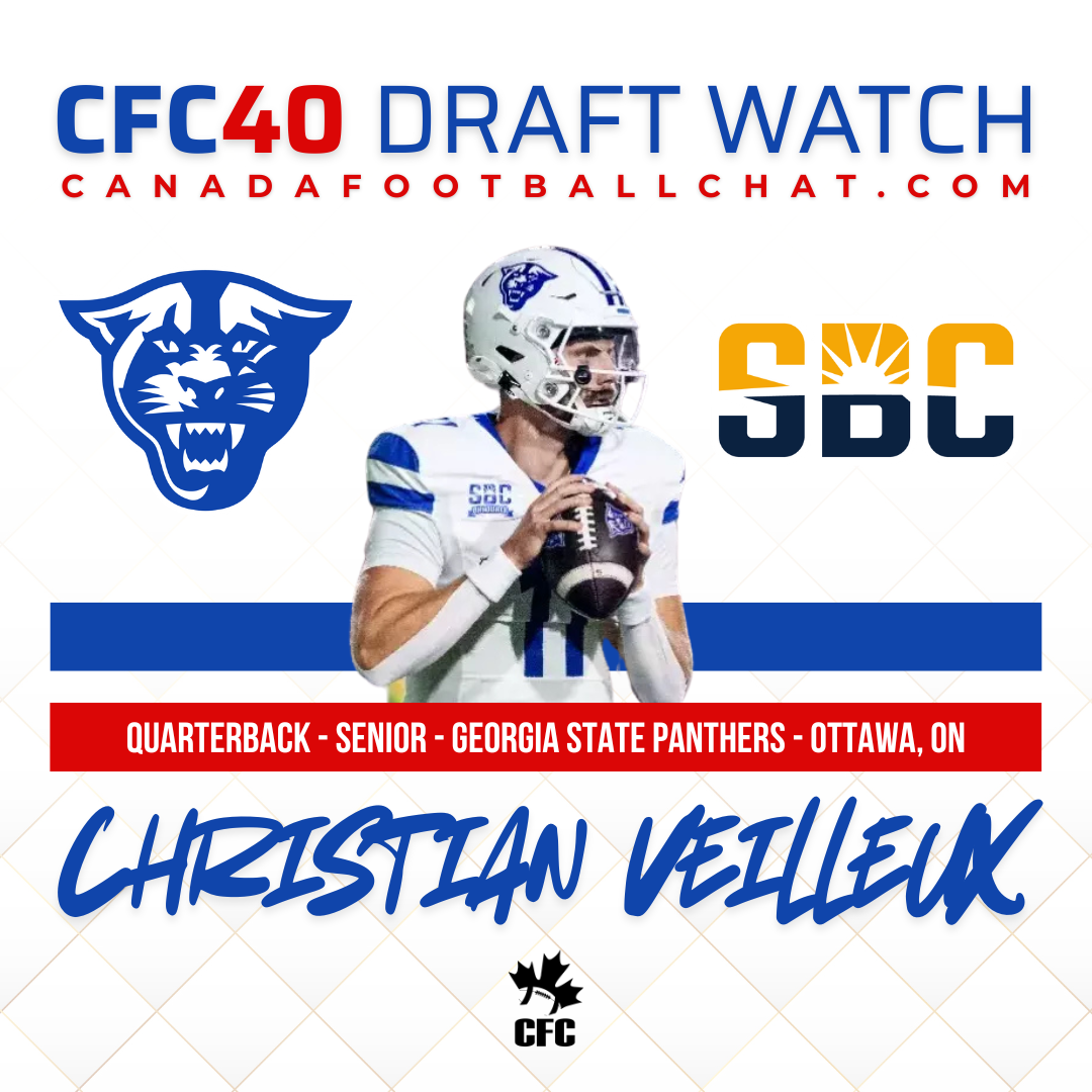 This week, weβre taking a look at one of Canadaβs most intriguing quarterback prospects Georgia State CFC100 QB Christian Veilleux.