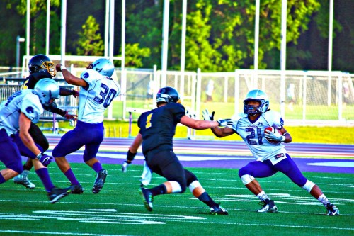 “The thing that jumps out about Cambridge right away is that they’re well coached on both sides of the ball,” assessed the Jr. Mustangs Head Coach. “Defensively, they have an aggressive front seven that their identity is to bring a lot of pressure and try to create havoc for the offence that way and they do a great job of it.”