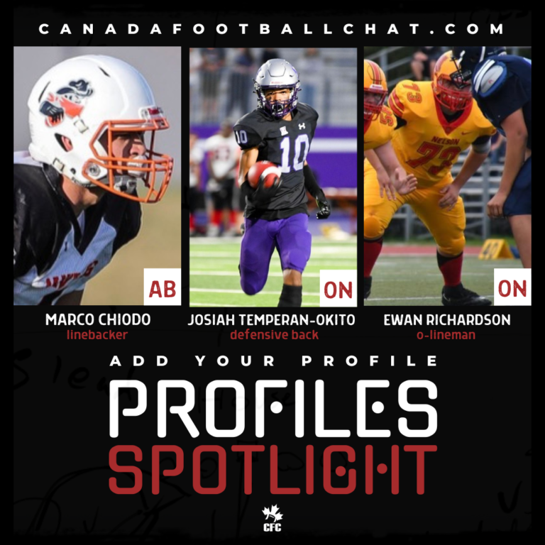 Today we highlight LB Marco Chiodo, DB Josiah Temperman-Okito and OL Ewan RichardsonΒ in the Profile Spotlight. Make sure to build your Personal CFC Profile and get it added to the database so we can include your profile in future articles!